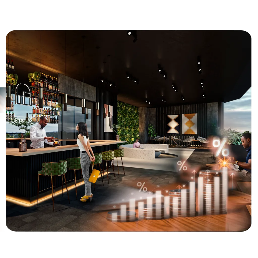 Check-in estilo lobby lounge, concierge, housekeeping, mantenimiento y revenue management integrados.